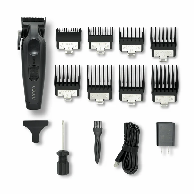 The Cocco Veloce Pro Clipper in matte black is the perfect blend of power, precision, and style. Built for professional barbers, it features a high-torque brushless DC motor (Version 2) that delivers ultra-smooth, powerful cutting with minimal noise and exceptional durability. This clipper is designed to meet the demands of a busy professional environment.